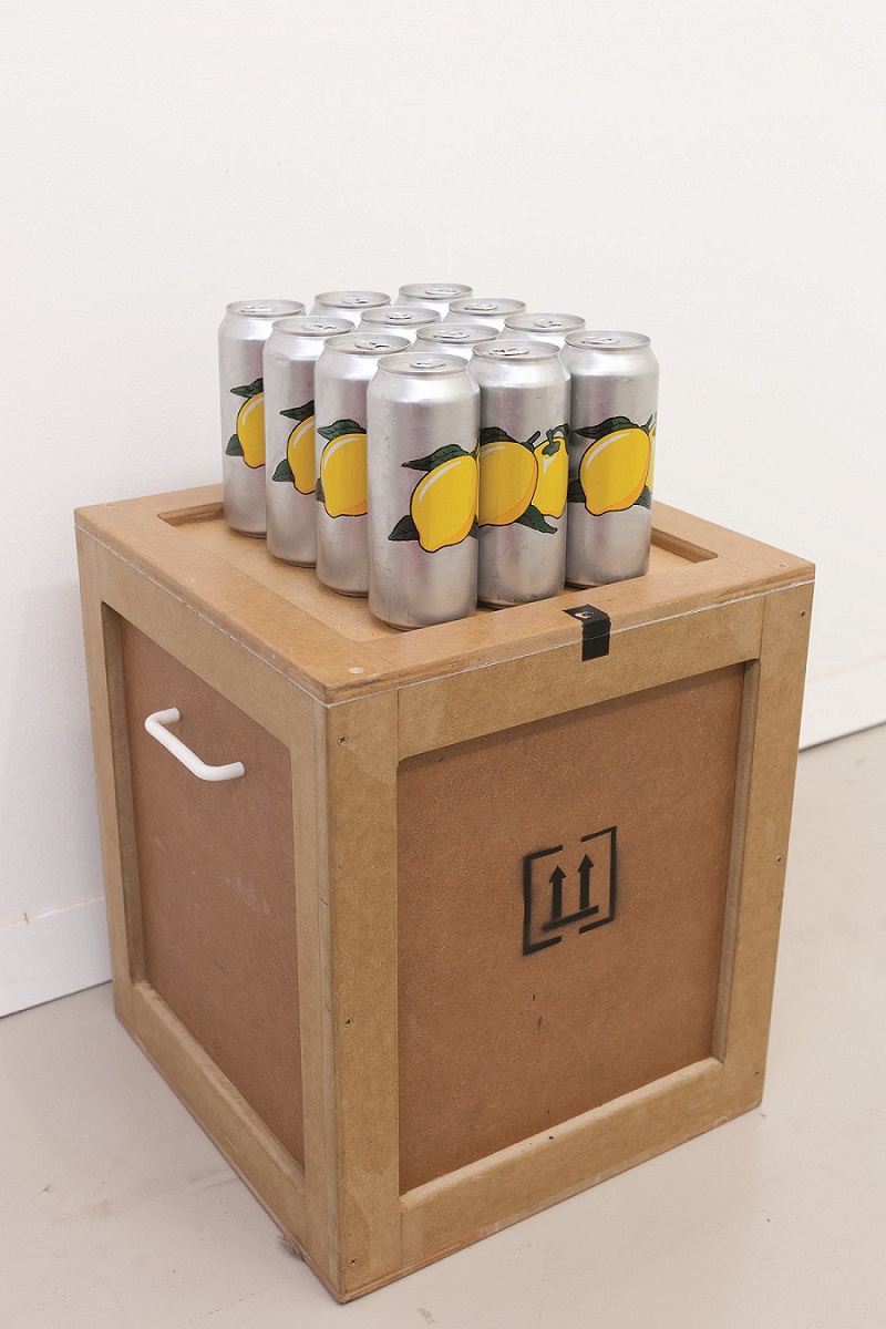Adriana Martínez, Sweet Life (2016). Pintura sobre 12 latas de aluminio; 7 x 7 x 19 cm cada una. Imagen cortesía de la artista.
