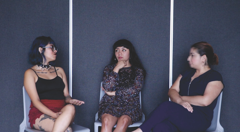 La apuesta de cuidado en ese momento fue disponer les agentes para crear un espacio de diálogo, dar unos pasos hacia atrás y no entrometerme en la conversación. Para ello invité como camarógrafa a Don Anahí, realizadora audiovisual y trabajadora sexual compañera en AMETS, para que la mirada fuese lo más horizontal posible, que se mirasen entre putas y con confianza. Así mismo, la entrevista fue realizada con base en un guión temático que habíamos planteado previamente junto a Mariana Recamier, compañera periodista feminista quien investiga temas de género.